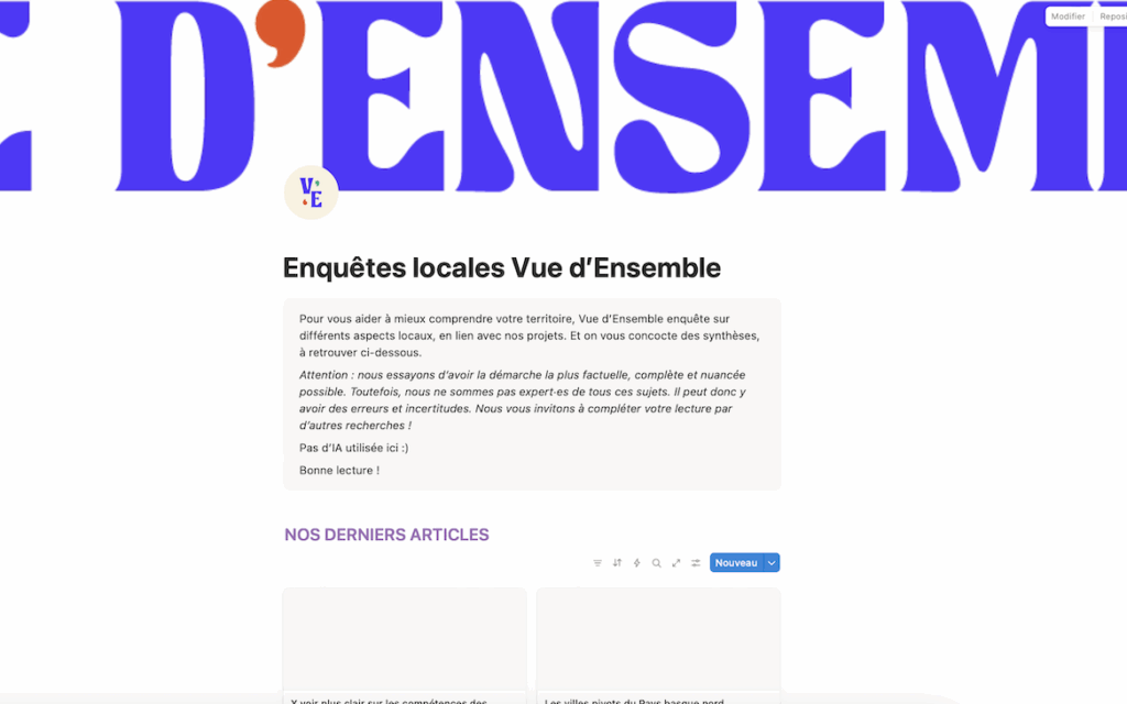 Pour vous aider à mieux comprendre votre territoire, Vue d’Ensemble enquête sur différents aspects locaux, en lien avec nos projets.